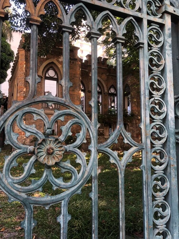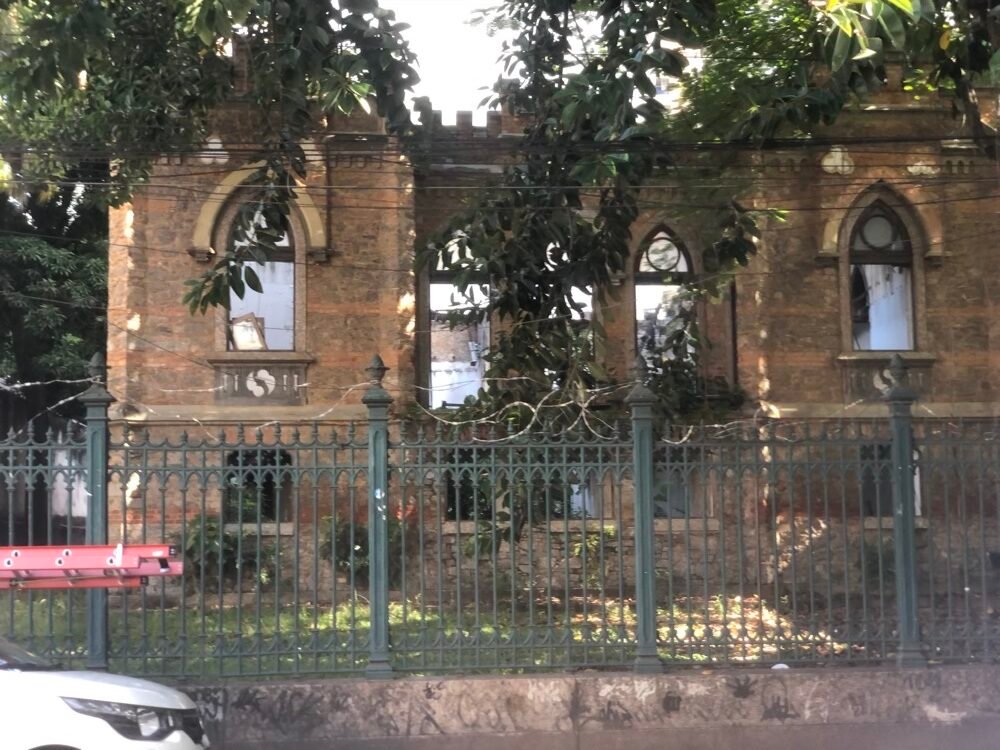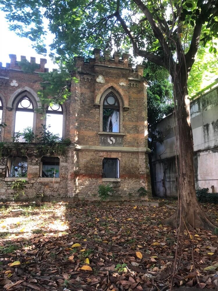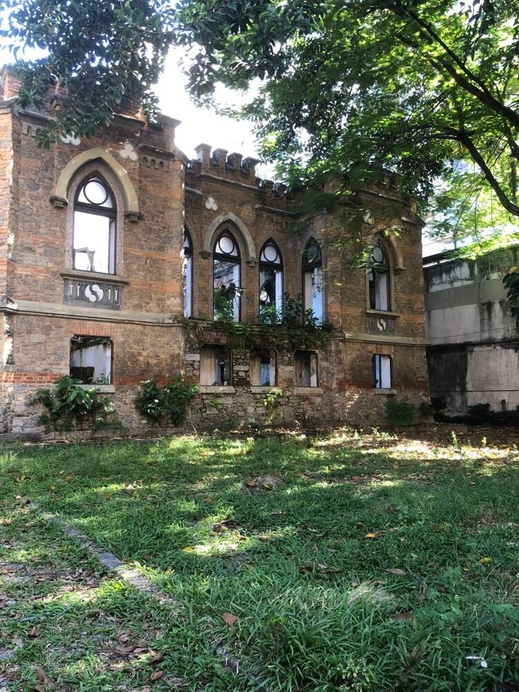 Mais para frente, no número 81, do outro lado da rua, estão as ruínas de um incrível palacete construído por um comerciante português no final do século XIX. Em estilo neogótico, tinha sido reformado em 1976 para abrigar os escritórios da Companhia Internacional de Seguros. Segundo minhas pesquisas, foi reformada em 1976 por Alcides Rocha Miranda para este fim.