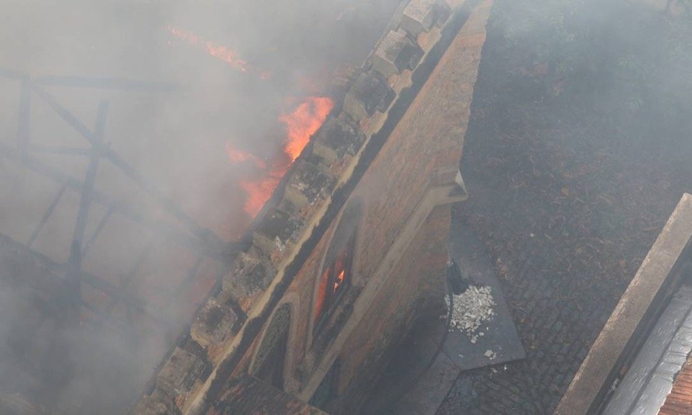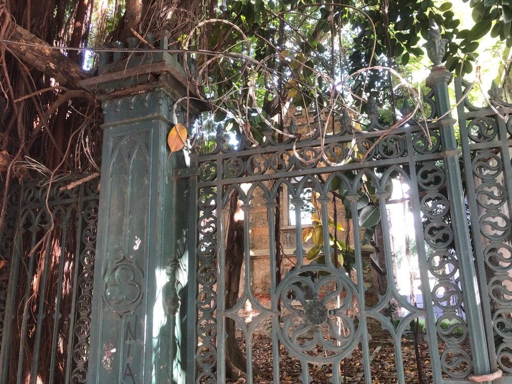 As paredes externas estão de pé, mas todo o telhado foi embora com o fogo, imperdoável. Não sei como um casarão abandonado pega fogo se nem tem energia. Penso logo em fogo criminoso para vender o terreno para construir um prédio.