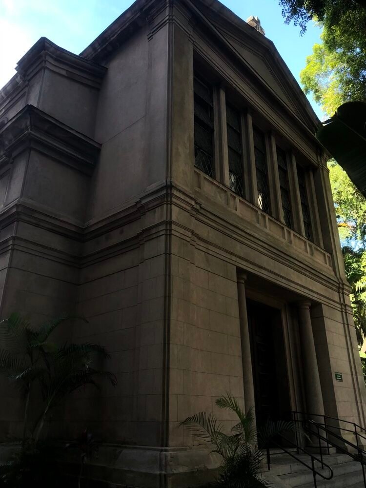 Logo em frente tem a Universidade Veiga de Almeida, que tem um prédio bacana também, uma igreja logo na entrada. Fechada, acho que não funciona mais como igreja, mas é um prédio bonito.